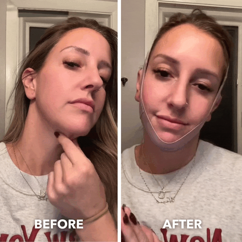 Ein bequemer, wiederverwendbarer Kinnriemen zum Anheben, Straffen und Formen der Kieferpartie, indem er Erschlaffungen reduziert und die Konturen verbessert – mühelos und bequem von zu Hause aus.